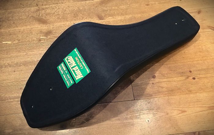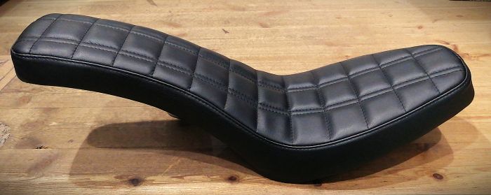 先端の角張った形状、フロント~リヤにかけてクビレが少なく、また緩く立ち上がる曲げの感じなどはUS製の当時物シート(チーター、AEE、Corbin、ドラスぺ等)をモチーフに何度も修正を重ね開発しました。