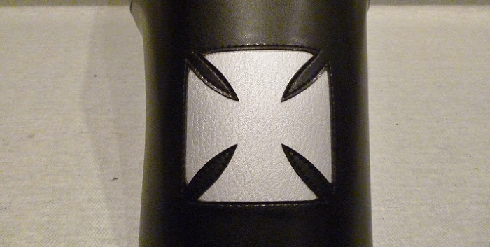 リヤ側にアイアンクロスをシルバーメタリックの合皮で刻みました。