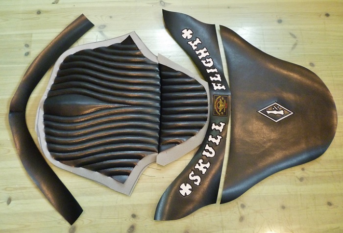 大好評のスカルフライトシート製作! 今回は純正シートをベースにします。 ↓