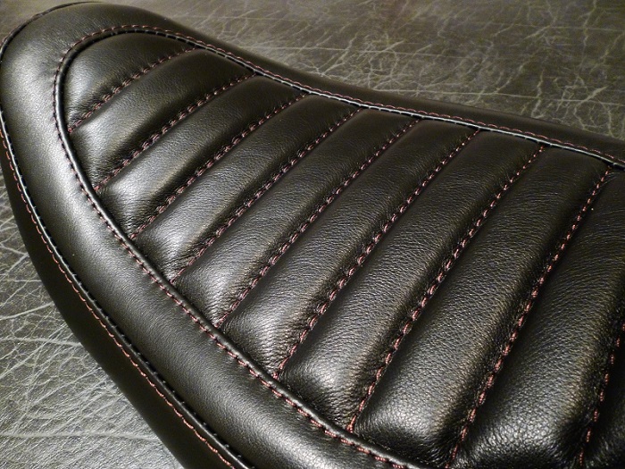 完成! 素材はハードライド合皮(黒)、定番の全面タックロールステッチで決めました。