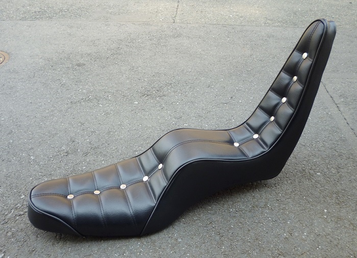 Chopperシート用に開発したハードライド合皮を使用し、ウレタンの造形〜細部のディテイルにまでこだわり製作しました。