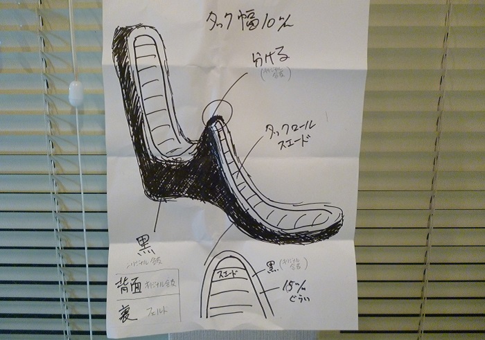 お客様に描いて頂いたデザイン画です、とても分かり易く助かります。 60年代風のラクダシートですね、