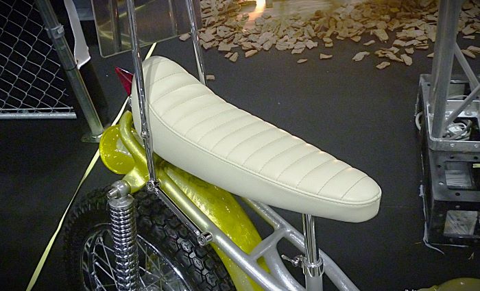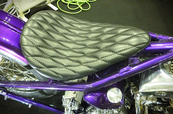 シートは総本革のダイヤステッチで製作させて頂きました。リジットでも驚くほどの乗り心地の良さです!