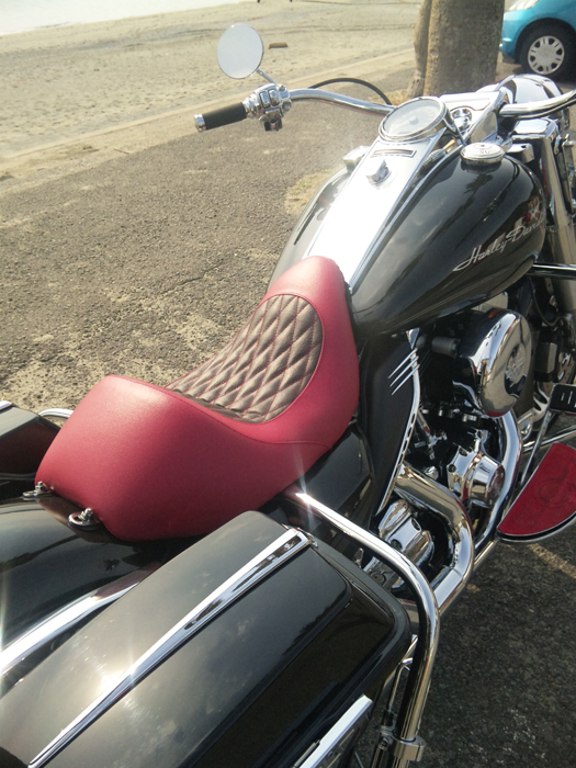 ブラックの車体に赤いシートが映えますね! 装着画像どうもありがとうございました。