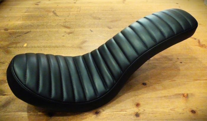 デザインは定番の全面横タックロールステッチ、車両の雰囲気に合わせ少し野暮ったいイメージで製作しました。