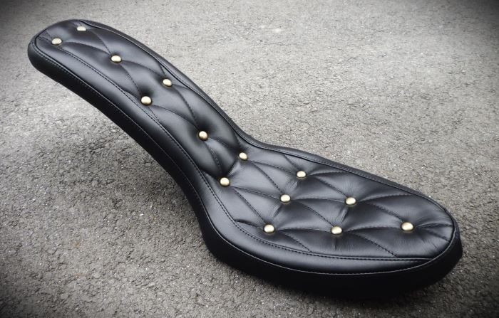今回は都内のお客様からのご依頼でショベル4速フレーム用のコブラシートを総本革で製作させて頂きました。