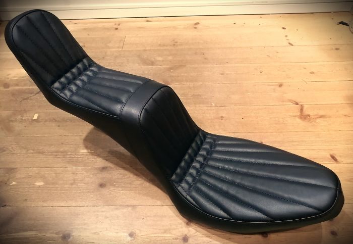 こちらは当時物のchopperシートのデザインをモチーフにしました。こちらも総本革張りで雰囲気最高ですね!